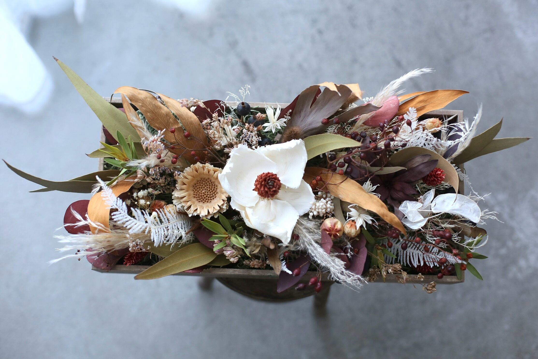 専用ページ【シックなドライフラワーボックス】開店祝い・新築祝いにおすすめアレンジ|縦横OKでおしゃれに飾れるフラワーアレンジ
