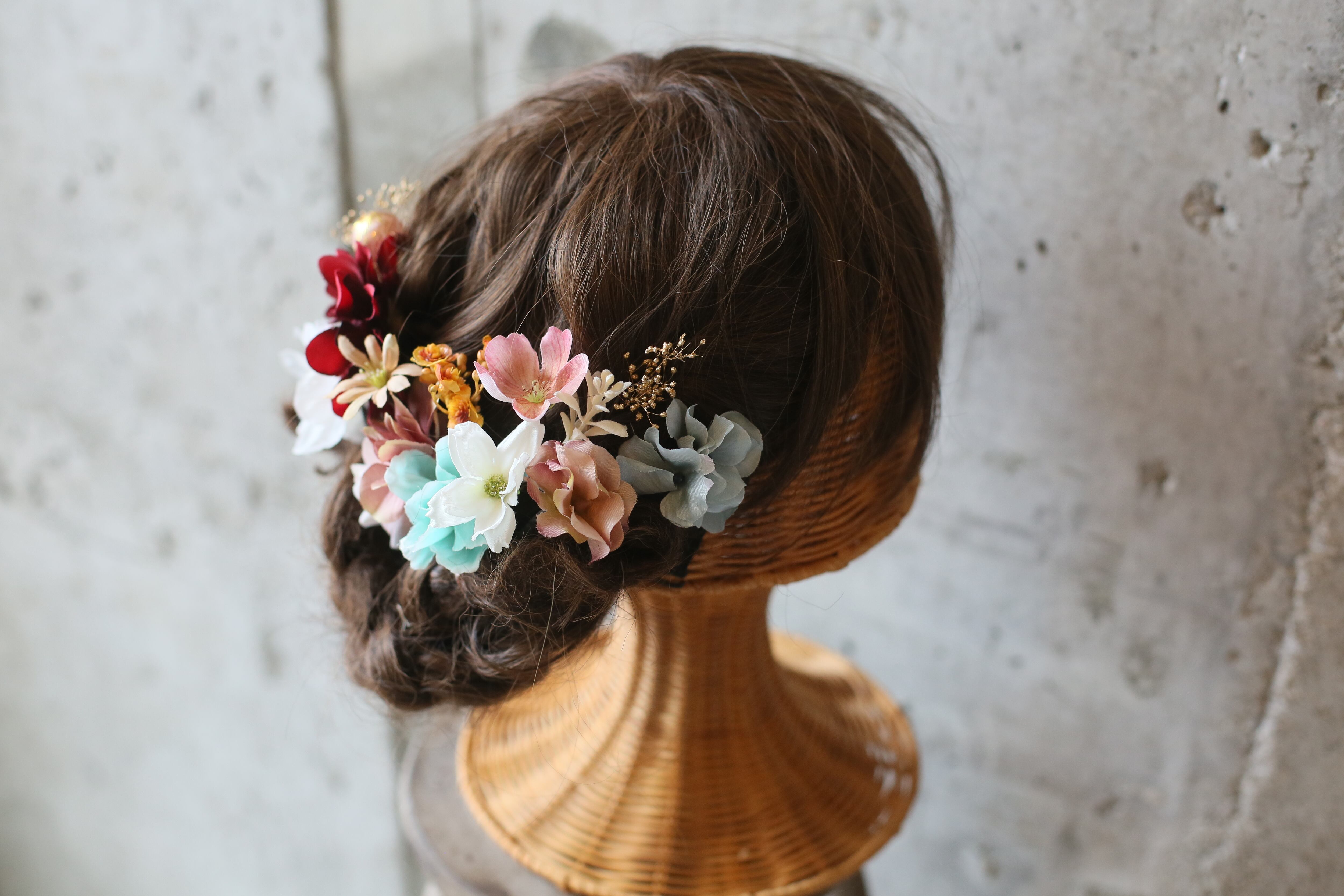 お顔のサイドにまとめて付けて華やかに*