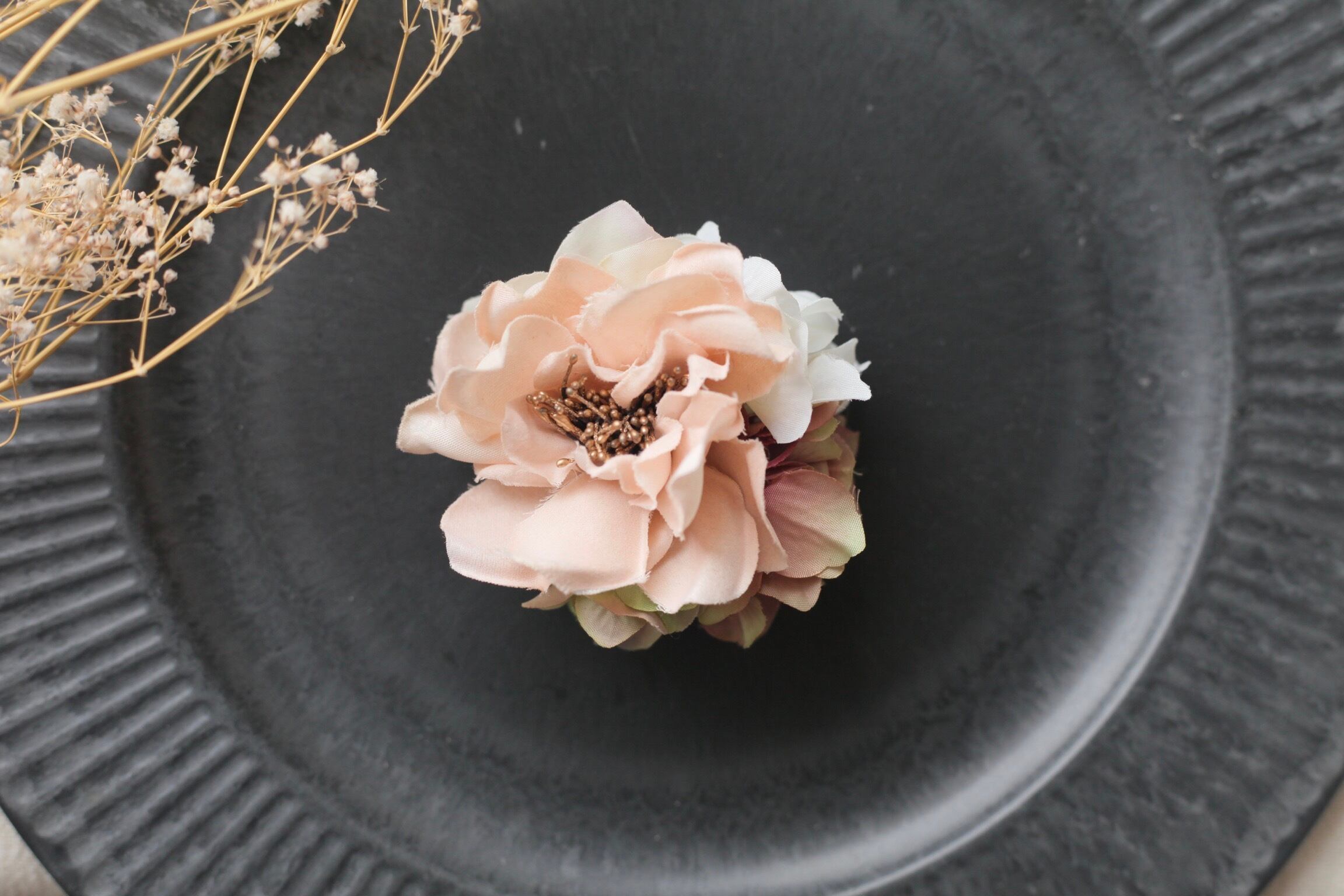 コサージュだけではなくカゴバックの飾りや、髪飾りとしてもお使い頂けます☺︎
