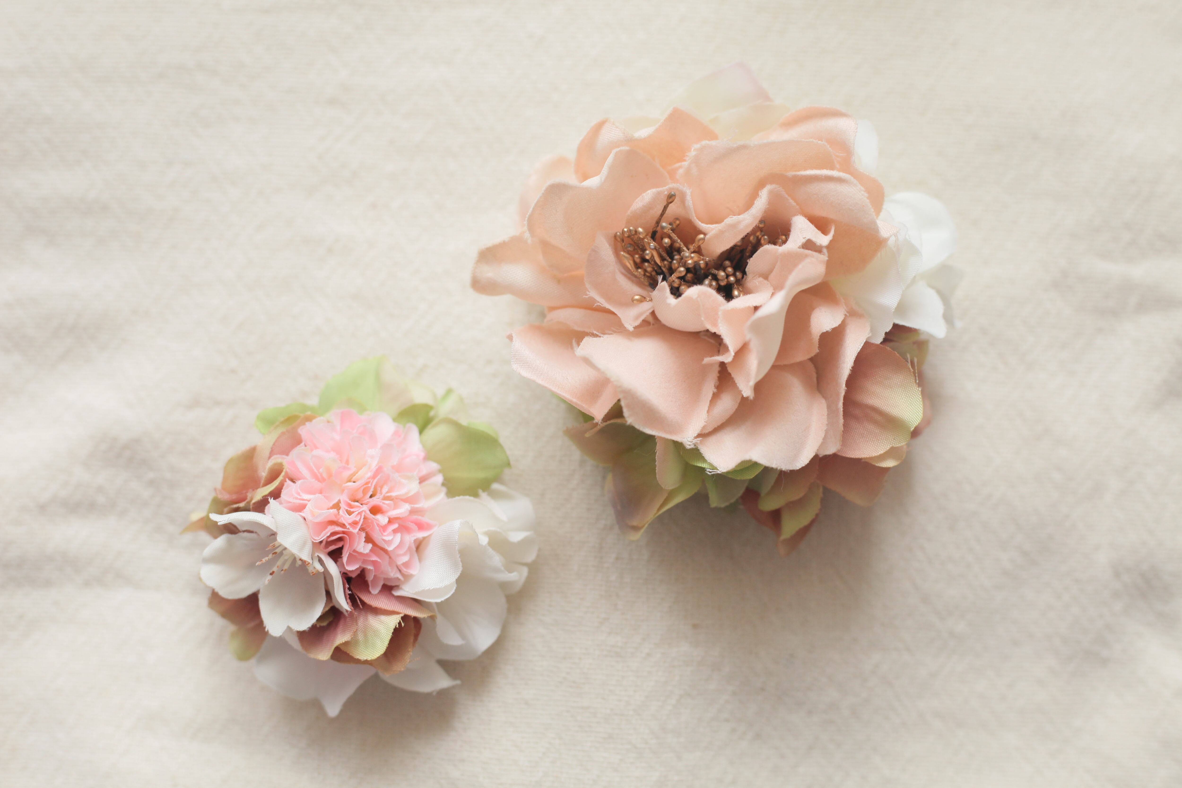 ピンク系で合わせた親子コサージュです❁