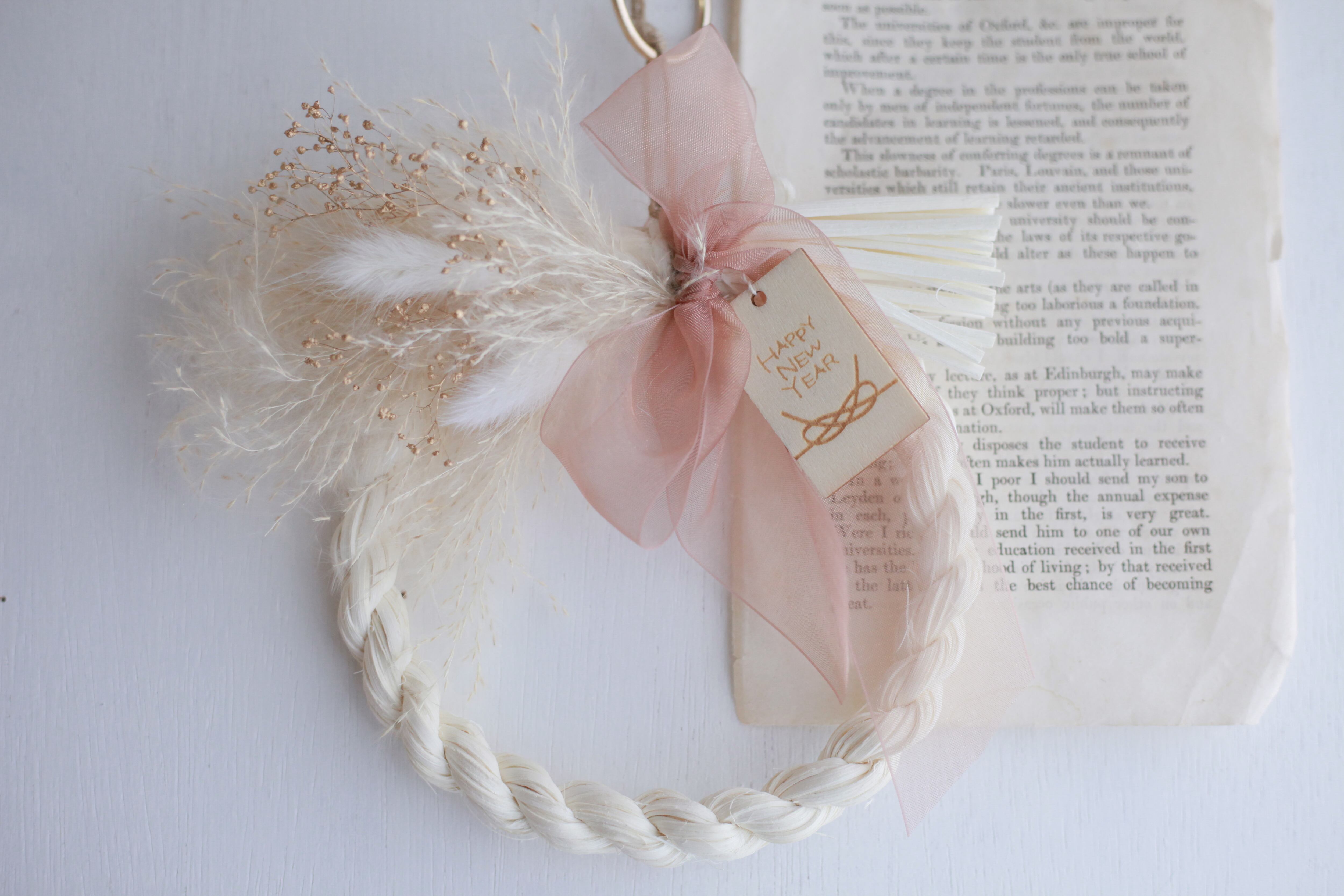 ラタン素材のしめ縄にふわふわのパンパスグラスやラグラなどの